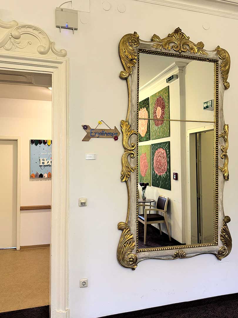 Zur Förderung der individuellen Fähigkeiten und zur Strukturierung des Tagesablaufs bieten wir im Haus eine Ergotherapie an. In der benachbarten Wohngruppe Ringhaus befindet sich zusätzlich eine Arbeitstherapie mit einem vielfältigen Angebot. Die Bewohner können außerdem an verschiedenen Tätigkeiten im Innen- und Außenbereich teilnehmen, wie etwa der Pflege des Schlossgartens.