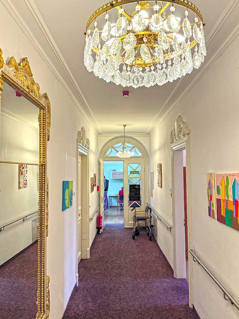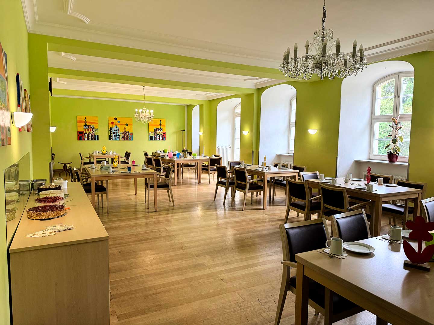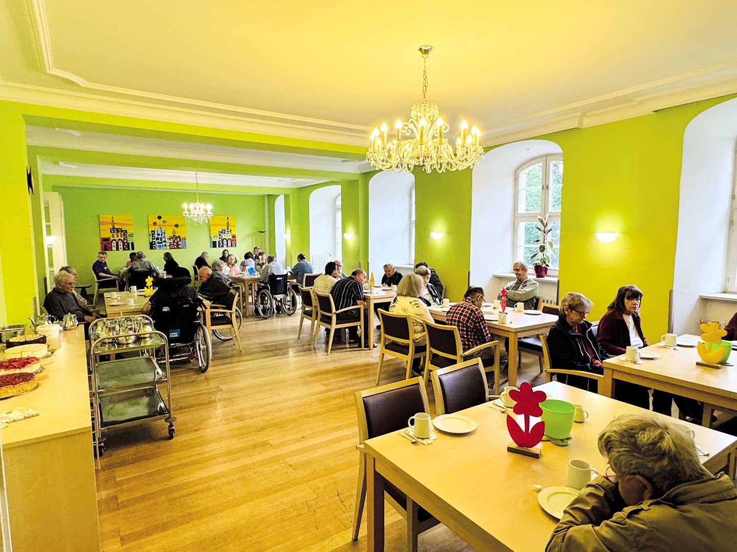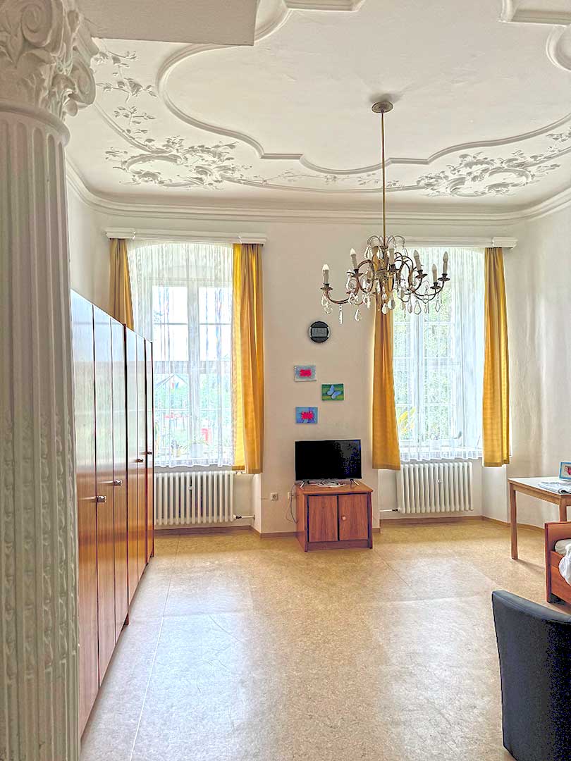 Im Haus finden sich mehrere gemütliche Gemeinschaftsräume, einige davon mit Fernsehern ausgestattet. Viele dieser Räume zeichnen sich durch hohe Decken und elegante Stuckverzierungen aus. Der neu gestaltete, lichtdurchflutete Speisesaal wird auch gerne für Feiern und Veranstaltungen genutzt.