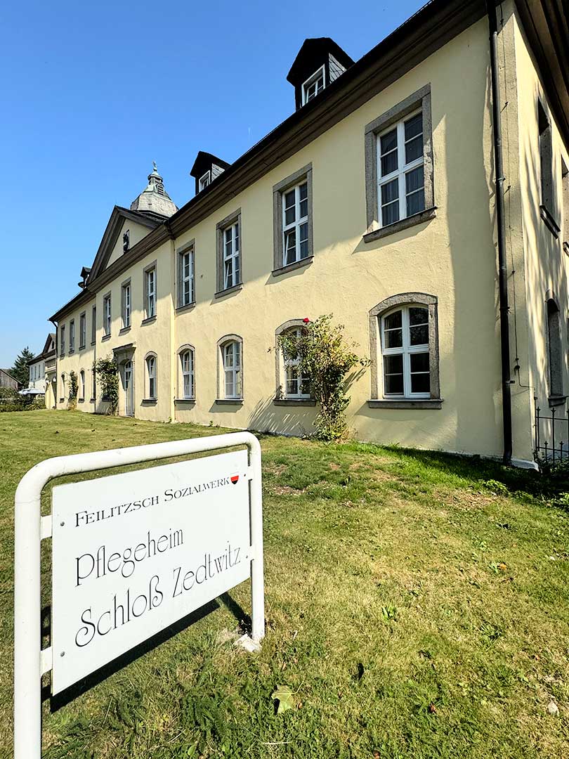 Das Pflegeheim Schloss Zedtwitz, im Jahr 2000 gegründet, liegt idyllisch im Ortskern des kleinen Dorfes Zedtwitz, nahe Hof. Es bietet seinen Bewohnern ein großzügiges und geschütztes Wohnumfeld mit viel Raum für individuelle Entfaltung.