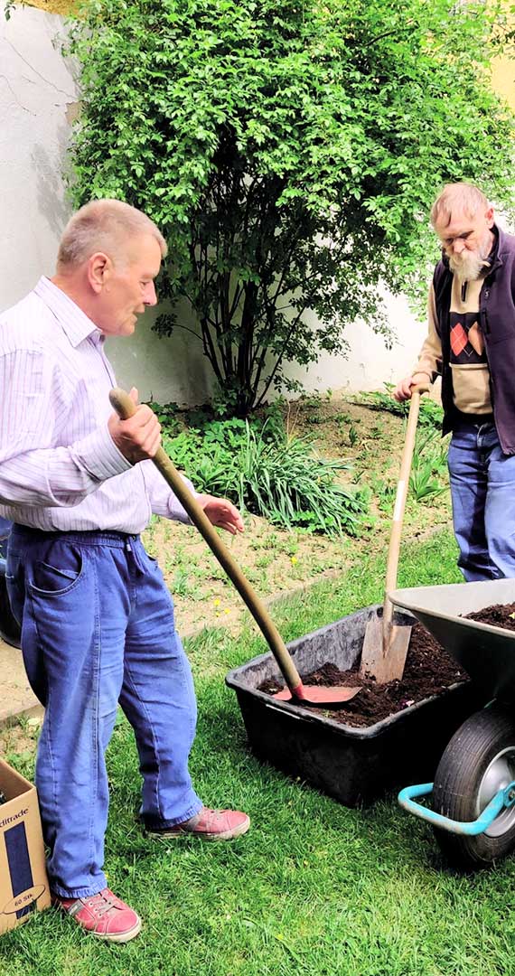 Um einen geregelten Tagesablauf zu unterstützen, verfügt unser Haus über zwei Ergotherapien und eine Arbeitstherapie mit einem vielfältigen Angebot. Zusätzlich gibt es zahlreiche Möglichkeiten zur Mitarbeit im Innen- und Außenbereich, wie etwa Tätigkeiten auf dem Holzplatz. Die kreativen Werke unserer Bewohner, die im Rahmen der Ergotherapie entstehen, zieren das gesamte Haus.